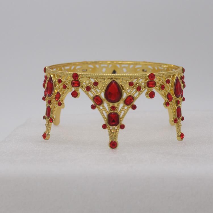 ヘアアクセサリー キッズ クラウン 韓国風 バロック調 高級感 ラウンド ティアラ 結婚式 誕生日 発表会 パーティー イベント 合金製 電気メッキ加工 レッド ホワイト