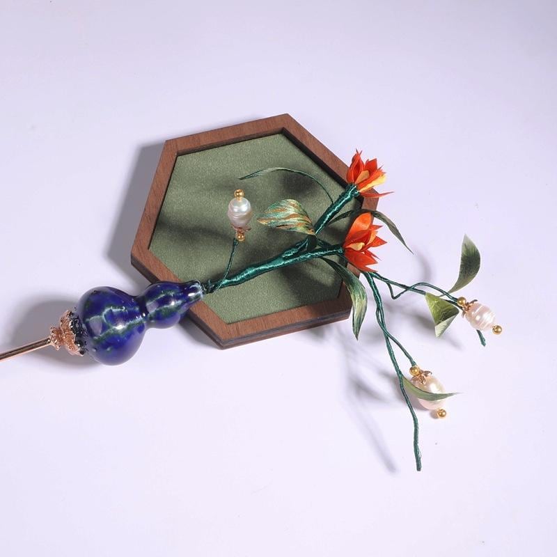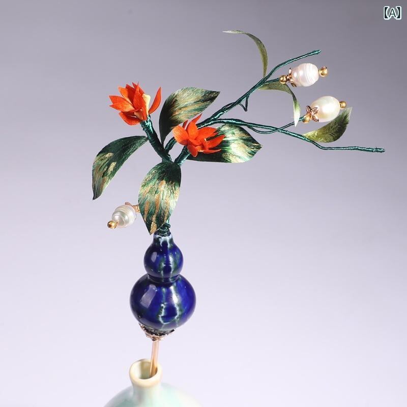 髪飾り 簪 手作り 伝統絨花 絹製 フラワーデザイン レトロ調 アンティーク風 中華風 オリエンタル 漢服 チャイナドレス まとめ髪 アップヘア ディープブルー 上品 エレガント パーティー 結婚式 成人式