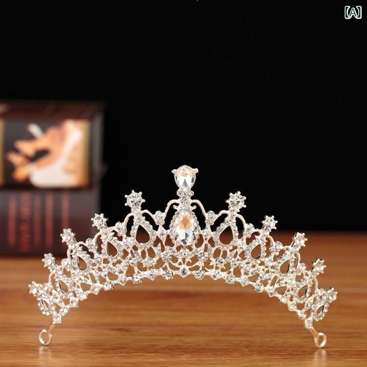 髪飾り レディース 韓国風 花嫁 ティアラ ウェディング ヘッドドレス 合金製 クリスタル ラインストーン 煌めく 上品 ブライダル 結婚式 披露宴 パーティー ヘアアクセサリー ホワイト 水滴型 電気メッキ加工