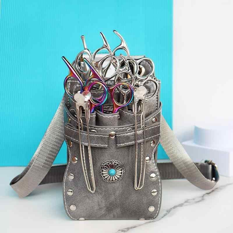 シザーケース 美容師 理容師 スタイリスト プロ用 多機能 理美容 ツールバッグ PVC素材 斜め掛け ウエストバッグ ブラック グレー ピンク