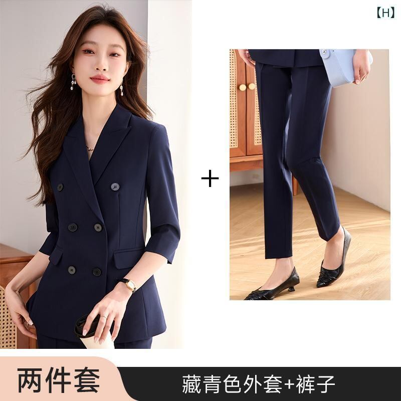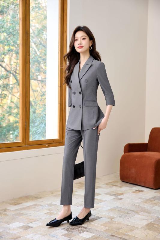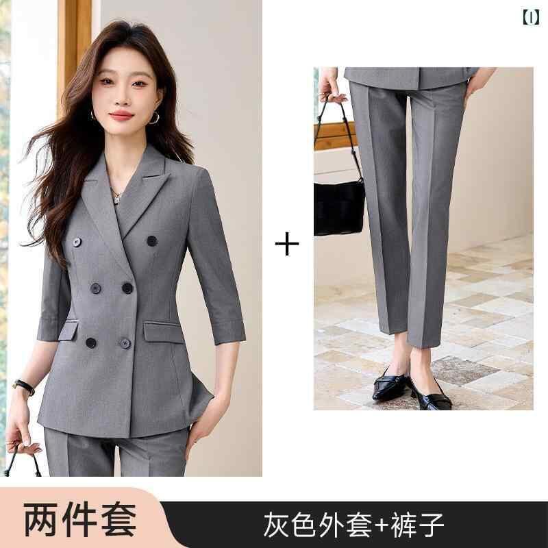 スーツ レディース 美容師 ホテル フロント 制服 半袖 七分袖 セットアップ スリムフィット オフィス ビジネス フォーマル グレー ブラック ネイビー ポリエステル ビスコース 春夏