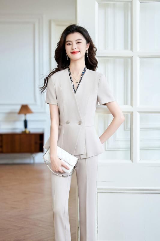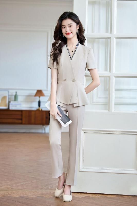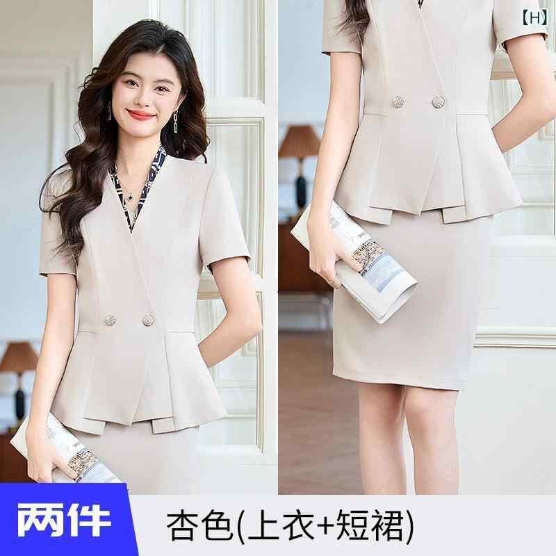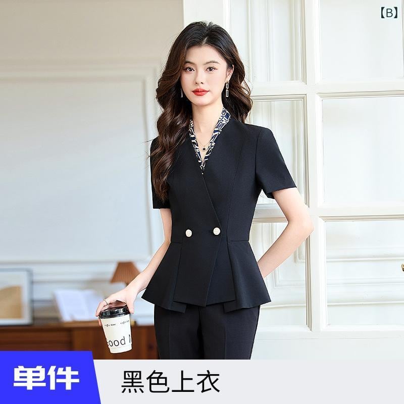 ・主な素材: ポリエステル繊維、スパンデックス・スタイル: OL通勤、リラックスカジュアル・スカート丈: ミドル丈・袖のタイプ: レギュラー袖・袖丈: 五分袖・カラー展開: アプリコットスーツ、ブラックのスーツ、アプリコットのスカート、ブラックのスカート、アプリコットのパンツ、ブラックのパンツ、ブラックのスーツ+スカート、アプリコットのスーツ+スカート、ブラックのスーツ+パンツ、アプリコットのスーツ+パンツ・サイズ展開: S、M、L、XL、XXL、XXXL、XXXXL