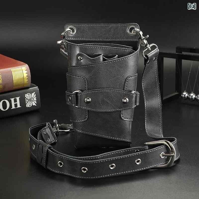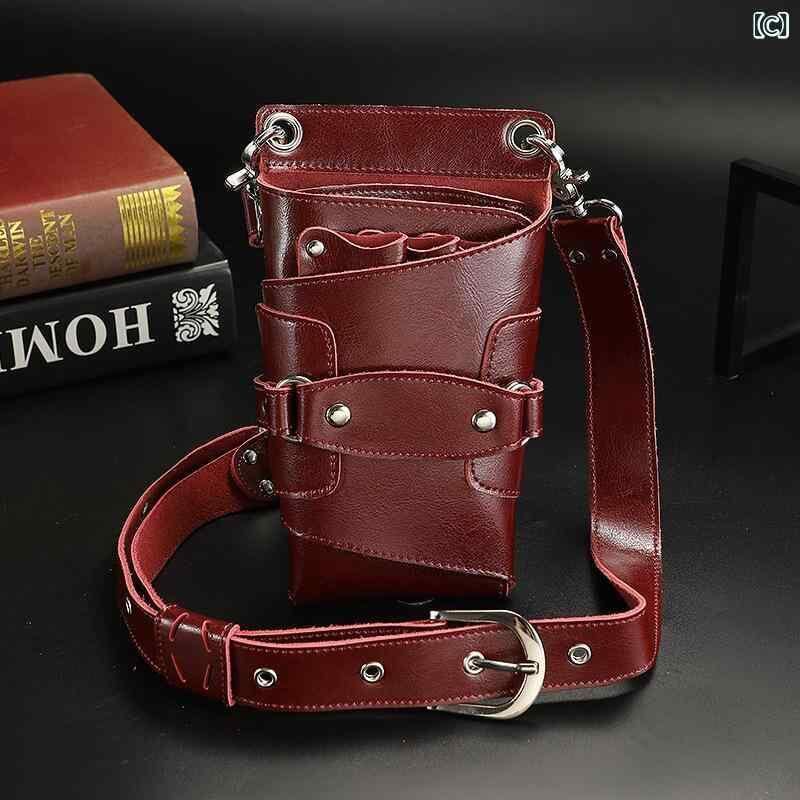 シザーケース 牛革 ウエストバッグ ショルダーバッグ 美容師 理容師 ペット グルーミング ツール 収納 大容量 ブラック ブラウン グレー