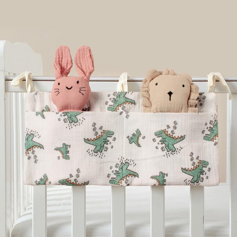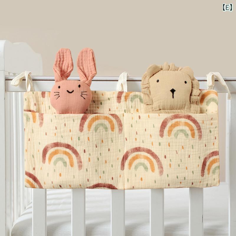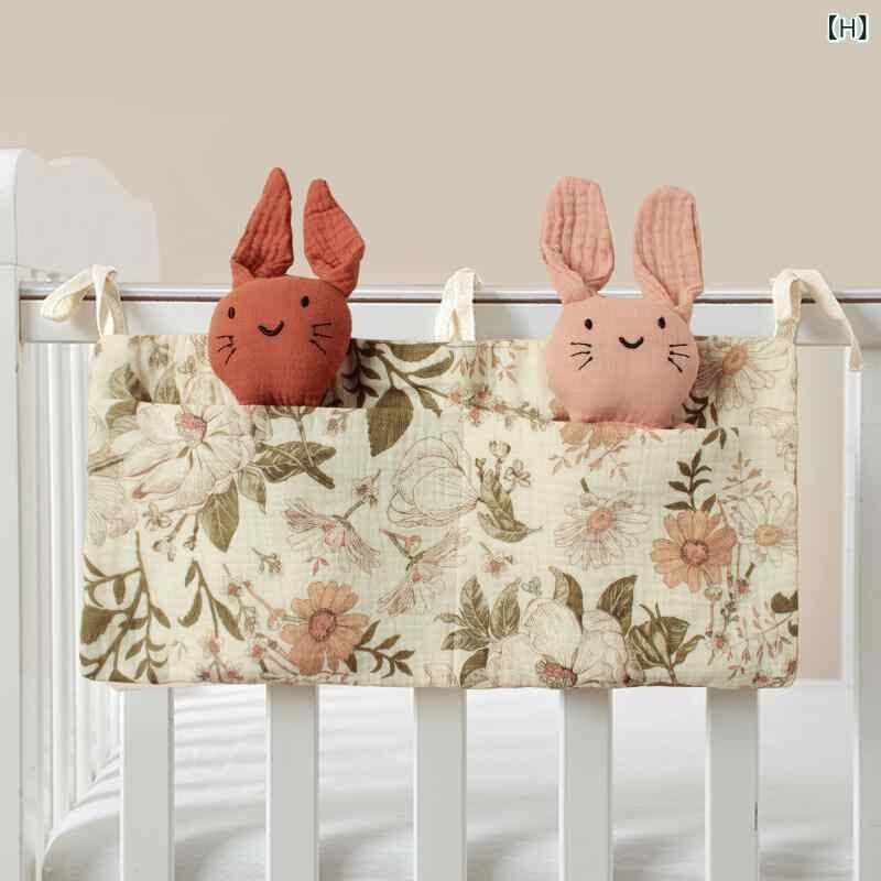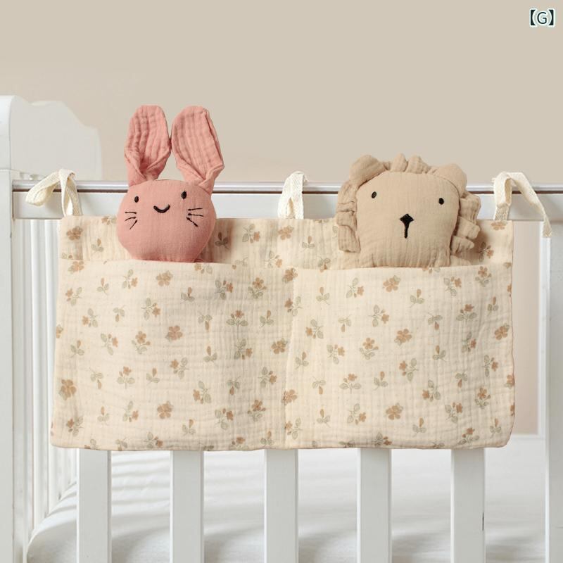 ベビーベッド 吊り下げバッグ ベビー 赤ちゃん 綿 二重ガーゼ 哺乳瓶 おむつ オムツ 小物入れ ダブルポケット 北欧風 多用途