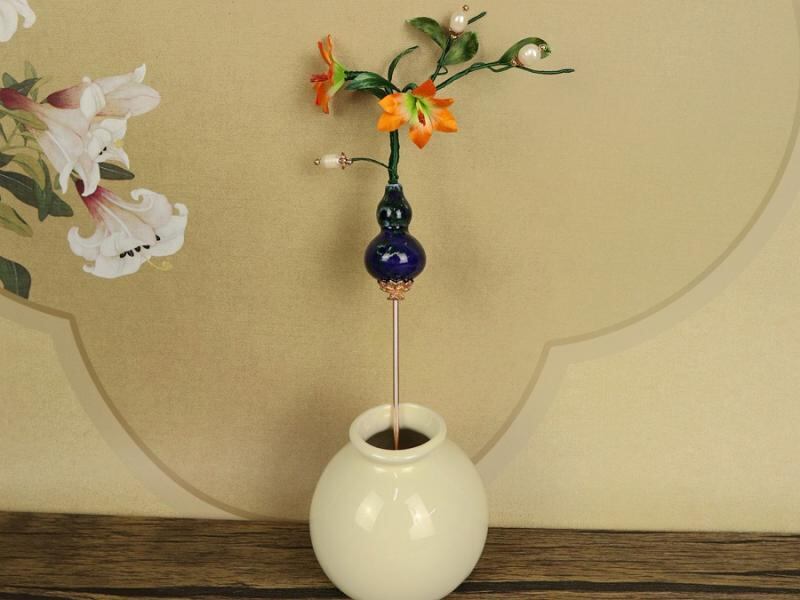 かんざし オリジナル 純手作り 無形文化遺産 絨花 シルク 蚕糸 レトロ ヴィンテージ 漢服 チャイナドレス 和装 まとめ髪 アップヘア 髪飾り オリーブグリーン