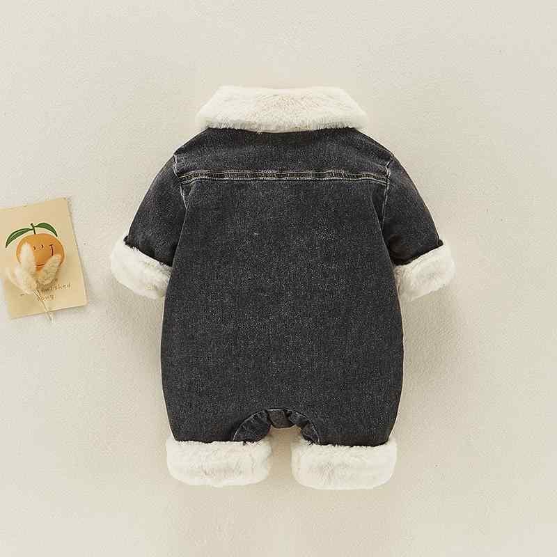 ロンパース 男の子 ベビー デニム カバーオール 秋冬 裏起毛 ブルー ブラック おしゃれ かわいい 暖かい お出かけ用