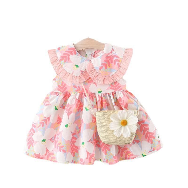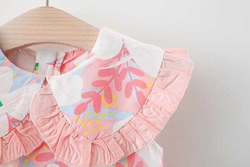女の子 ドレス ベビー キッズ ワンピース ノースリーブ プリンセス 綿 コットン ソフトタッチ おしゃれ トレンド 韓国風 花柄 グリーン 春夏