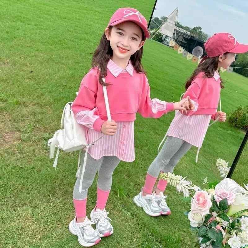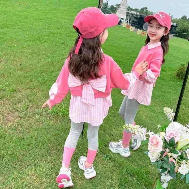 セットアップ 女の子 キッズ ベビー スウェット パンツ リボン 切り替え ストライプ 韓国風 おしゃれ かわいい 普段使い 通園 カジュアル 綿混 ポリエステル 秋冬