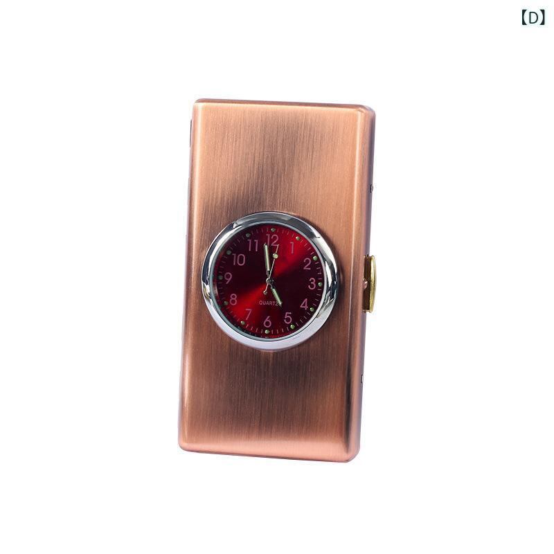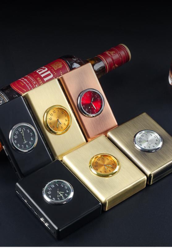 シガレットケース メンズ メタル製 デジタル時計 ミラー付き 携帯用 耐衝撃 防湿 スリム レギュラー たばこ収納 シンプルデザイン ブロンズ ゴールド ブラック
