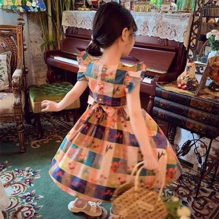 ワンピース キッズ 女の子 子供服 プリンセスドレス フリル袖 チェック柄 チューリップ柄 小花柄 かわいい おしゃれ お出かけ 普段使い Aライン 春夏 綿 ポリエステル アセテート