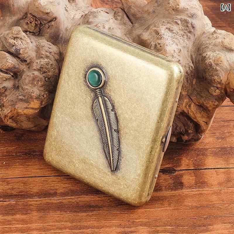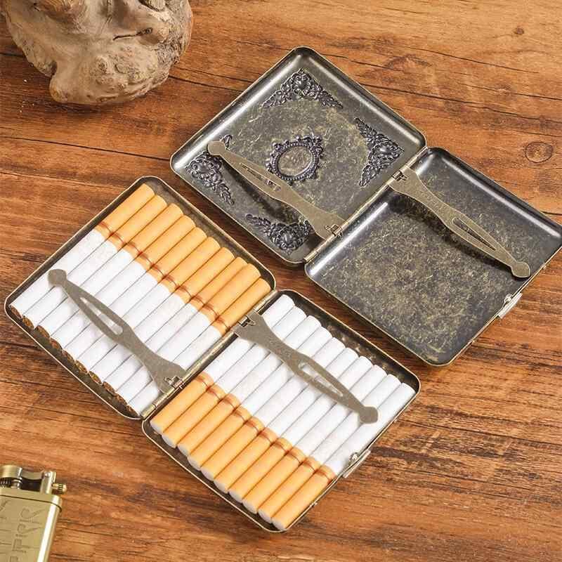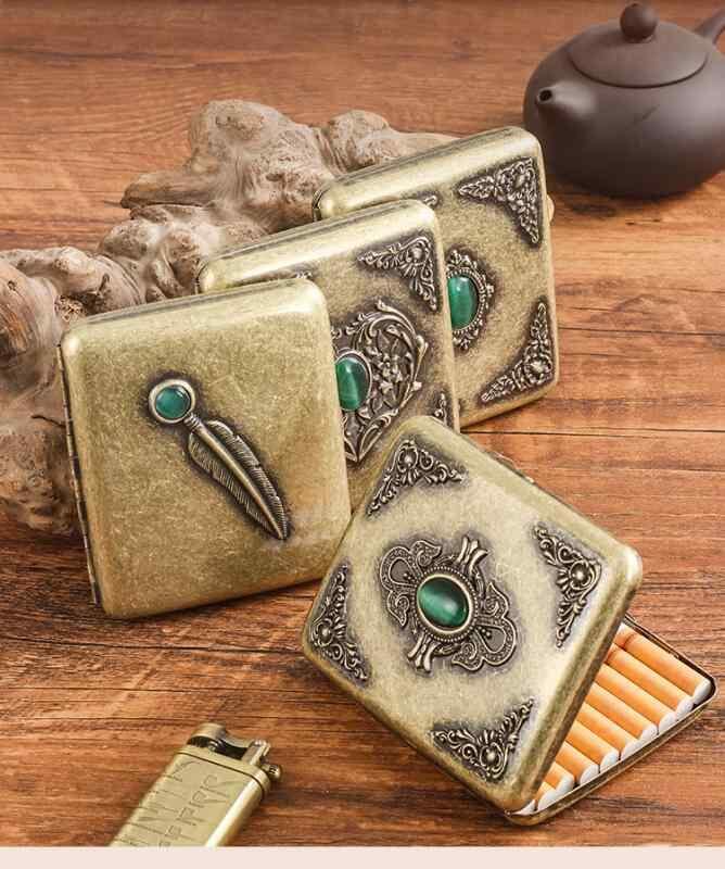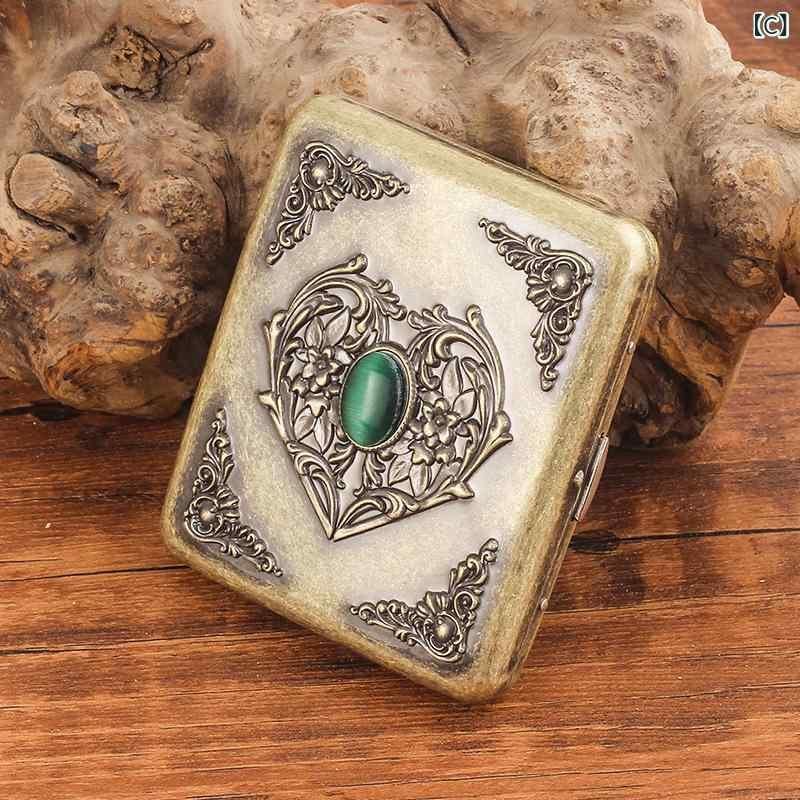 煙草ケース メンズ 男性用 シガレットケース 金属製 浮き彫り レトロ 個性的 デザイン 20本収納 大容量 耐圧 携帯用 アンティーク調 ブロンズ シルバー 普段使い ギフト