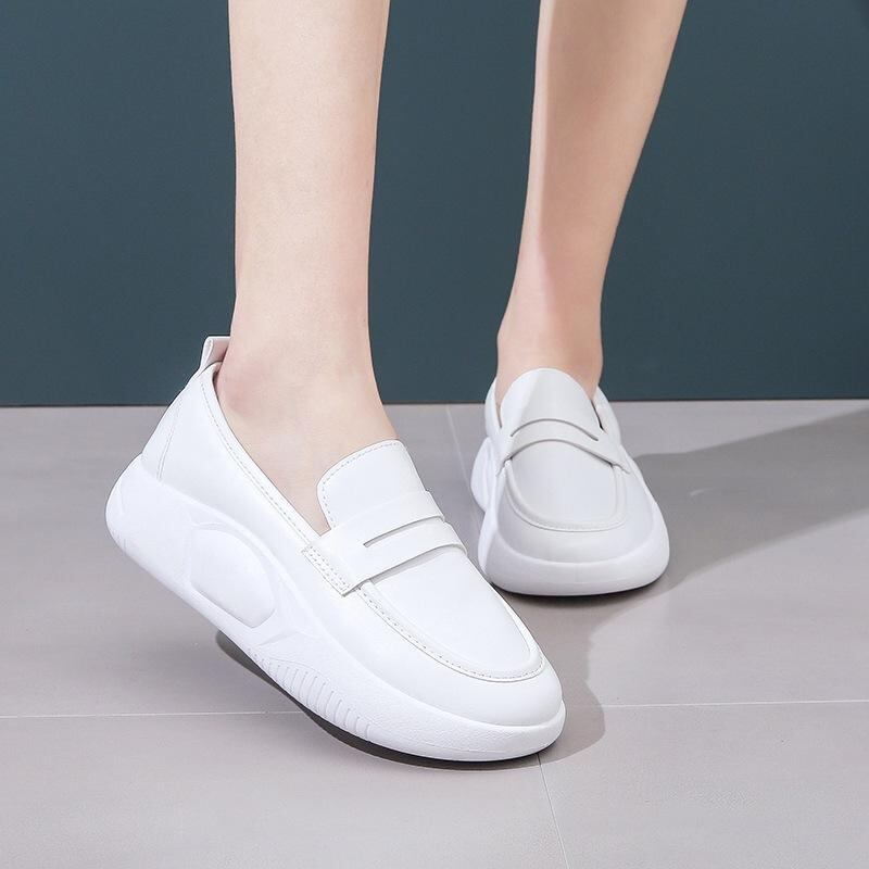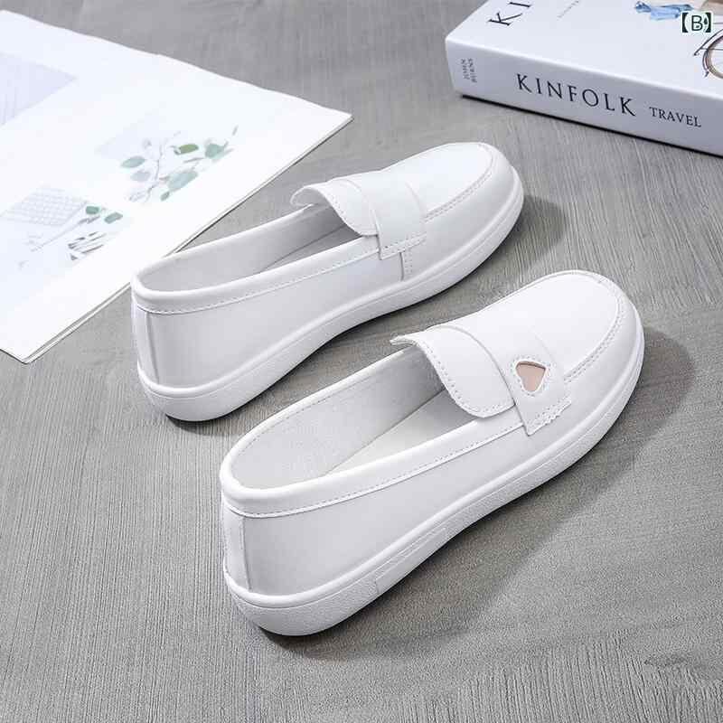ナースシューズ レディース ホワイト 厚底 スタイルアップ 合成皮革 ソフト底 通気性 防臭 疲れにくい 快適 軽量 医療用 介護用 オフィス 立ち仕事 スリッポン