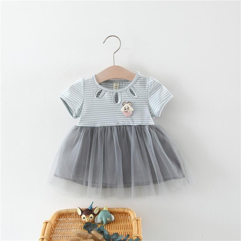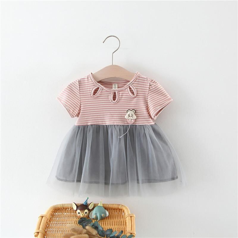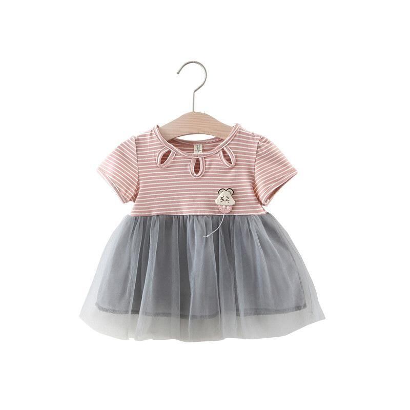 キッズ 女の子 ベビー ワンピース 半袖 ストライプ柄 ボーダー柄 韓国風 夏物 コットン 綿素材 プリンセスライン フレア かわいい お出かけ 普段着 イエロー ライトブルー