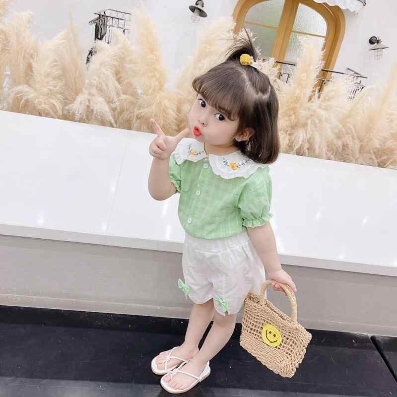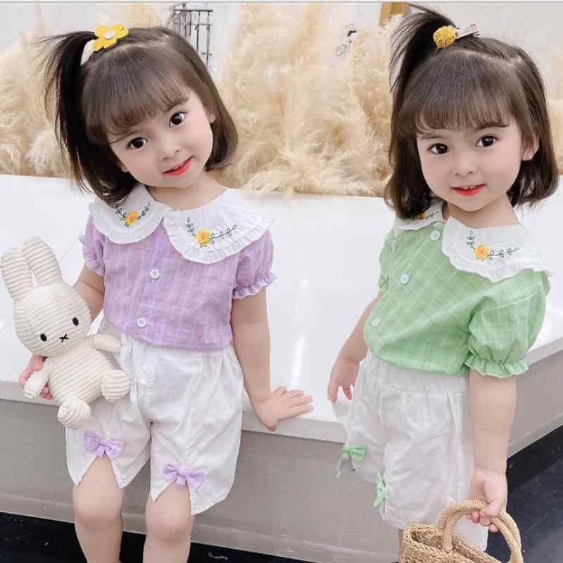 女の子 ベビー服 子供服 韓国風 かわいい チェック柄 ドールカラー 半袖シャツ ショートパンツ 2点セット 上下セット 綿素材 柔らか 薄手 夏