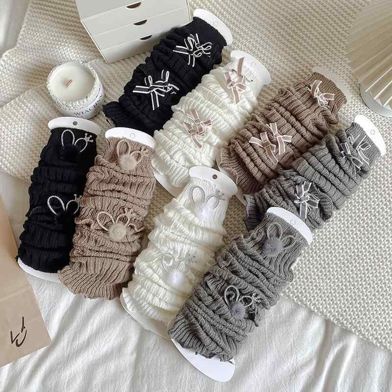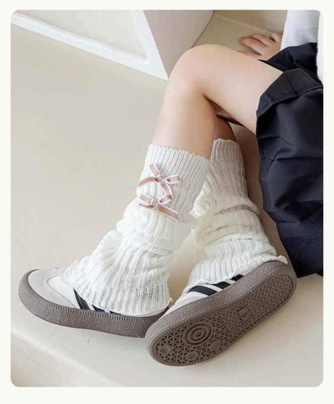 レッグウォーマー キッズ 女の子 ベビー ダブルリボン ロリータ風 無地 ルーズソックス くしゅくしゅ ニット 通気性 吸汗性 コットン ホワイト グレー ブラック ブラウン