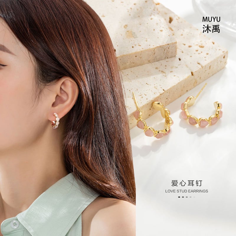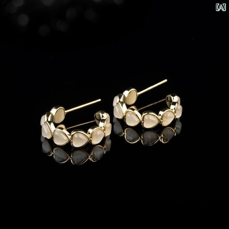 イヤリング レディース キャッツアイ ハート 立体 エレガント 軽やか 高級感 繊細 銅製 電気メッキ加工 ピアス ニュアンス 万能