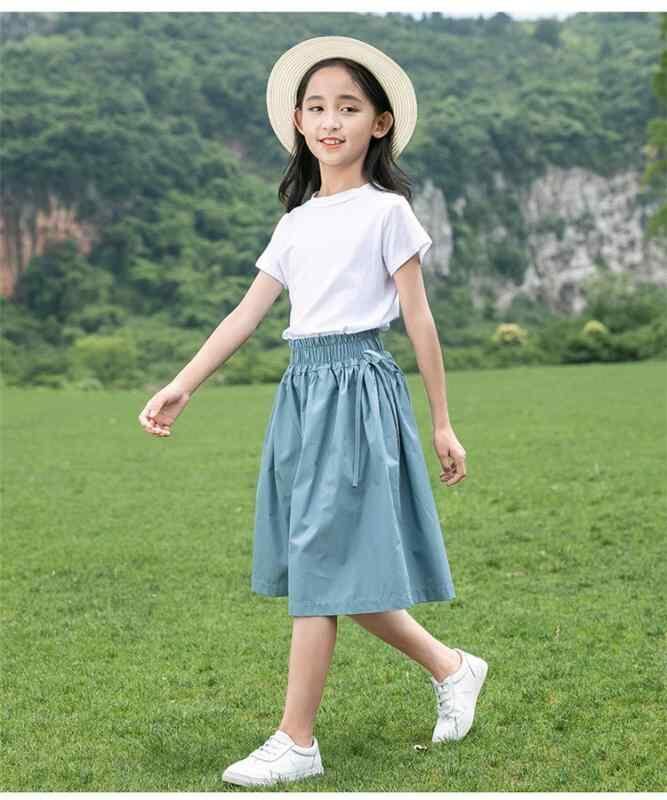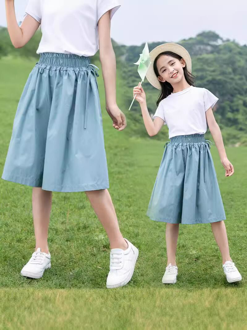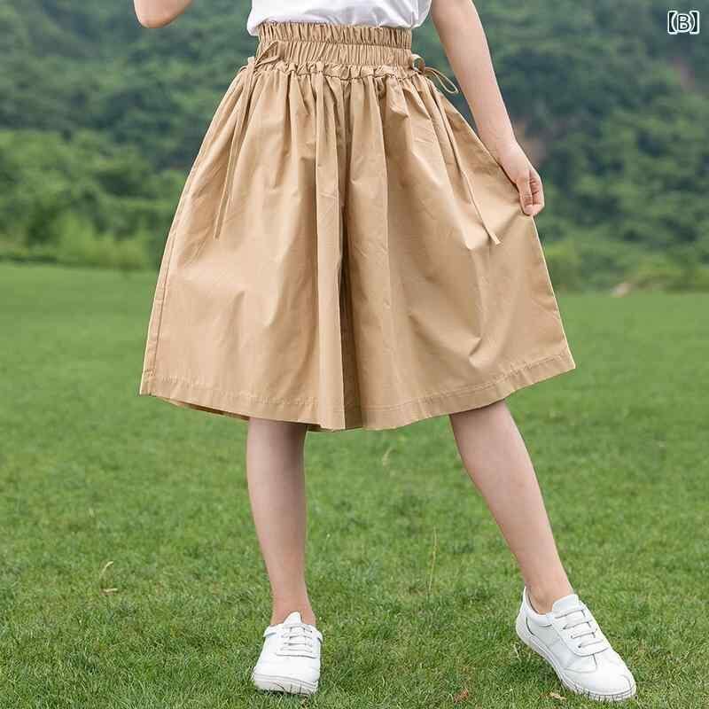 キュロット 女の子 ジュニア 小中学生 ゆったり カジュアル 夏 薄手 ワイド ガウチョ 5分丈 無地 コットンブレンド ミドルウエスト ダークブルー カーキ