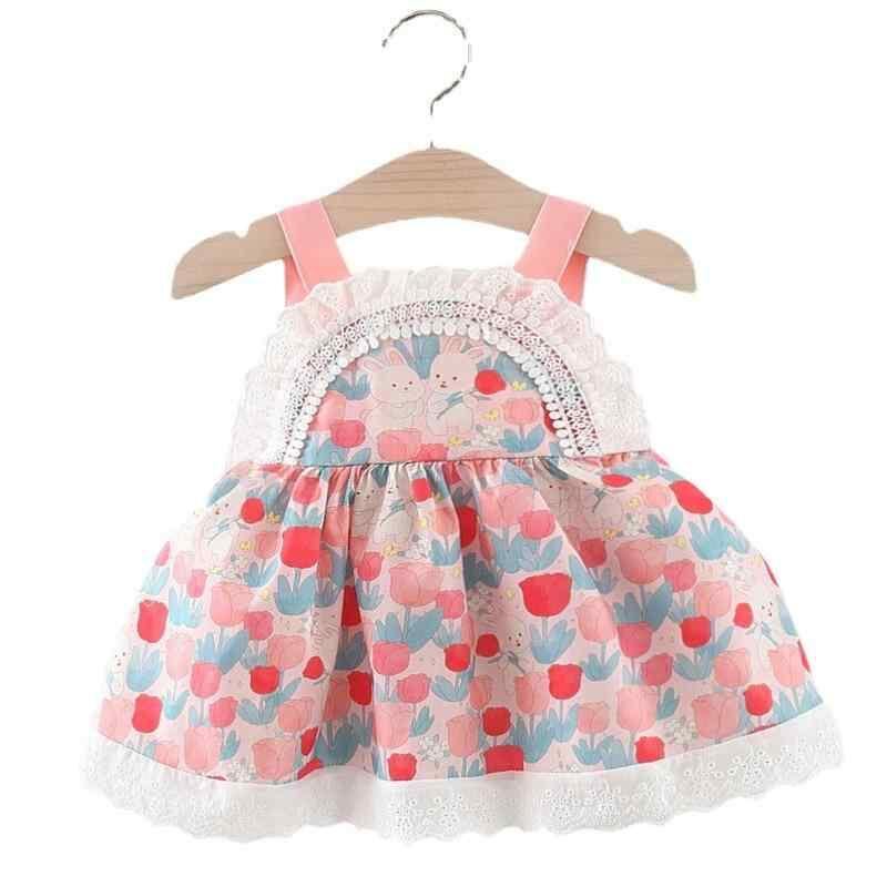 ワンピース ベビー 女の子 コットン 韓国風 うさぎ柄 キャミソール プリンセス風 フレア 春夏 ピンク ブルー 普段使い お出かけ 柔らかい