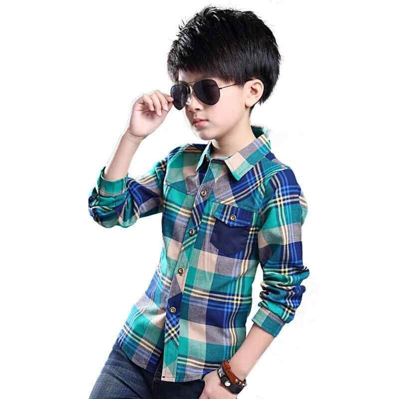 シャツ 男の子 キッズ チェック柄 襟付き 長袖 綿混 コットンブレンド トップス 小学生 中学生 ジュニア 通学 普段使い カジュアル グリーン レッド 春秋冬