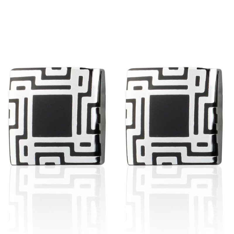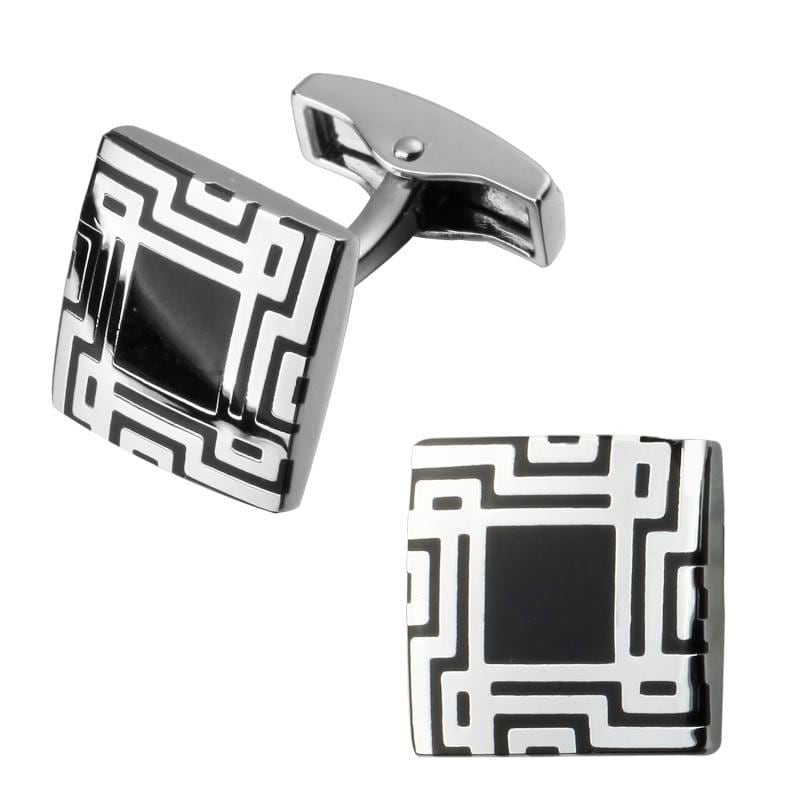 カフリンクス メンズ 男性用 フレンチカフス 袖口ボタン エナメル 琺瑯 電気メッキ加工 欧米スタイル ビジネス フォーマル 高級感 ブラック 迷宮デザイン
