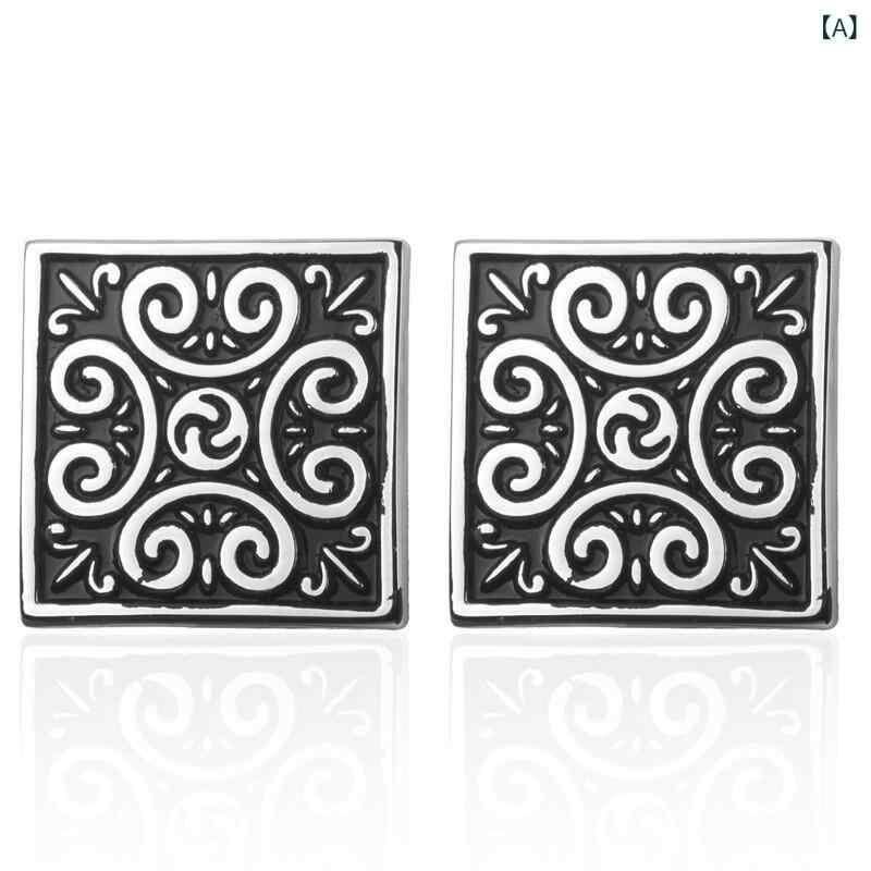 カフス メンズ ブラック レトロ 花柄 アンティーク調 銅製 電気メッキ加工 フレンチカフスシャツ用 ワイシャツ ビジネス フォーマル 結婚式 パーティー