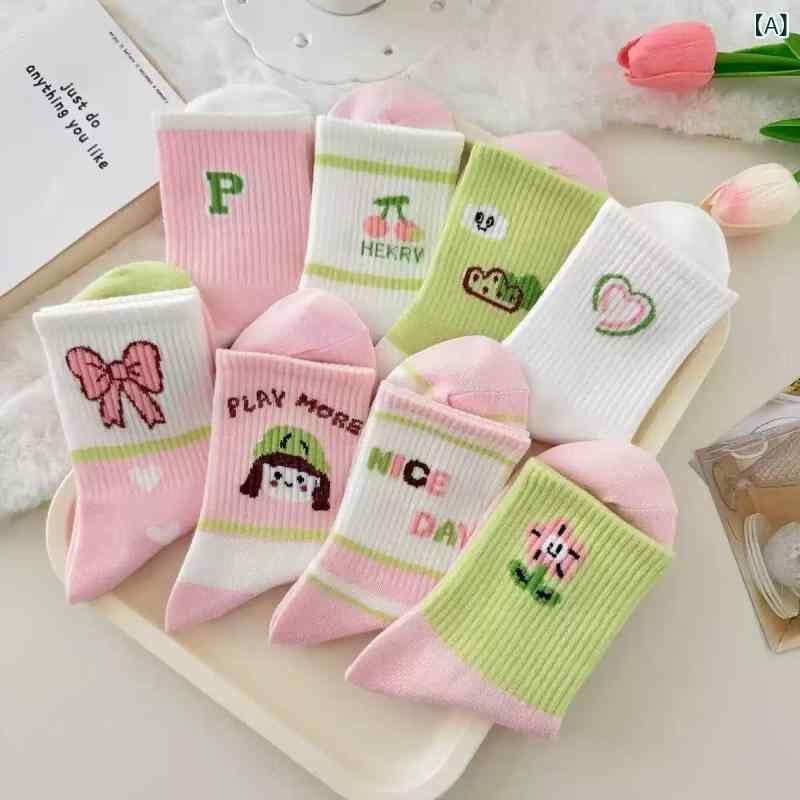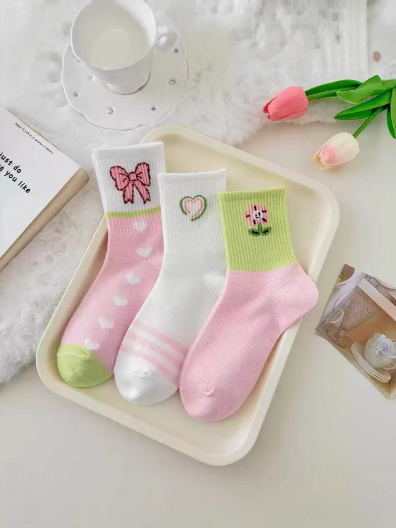 靴下 女の子 キッズ ジュニア 子供用 春秋 クルー丈 かわいい 綿混 ポリエステル混 キャラクター レインボー柄 ピンク スポーティ 英字柄 通気性 吸汗性 中厚手 ジャガード織り