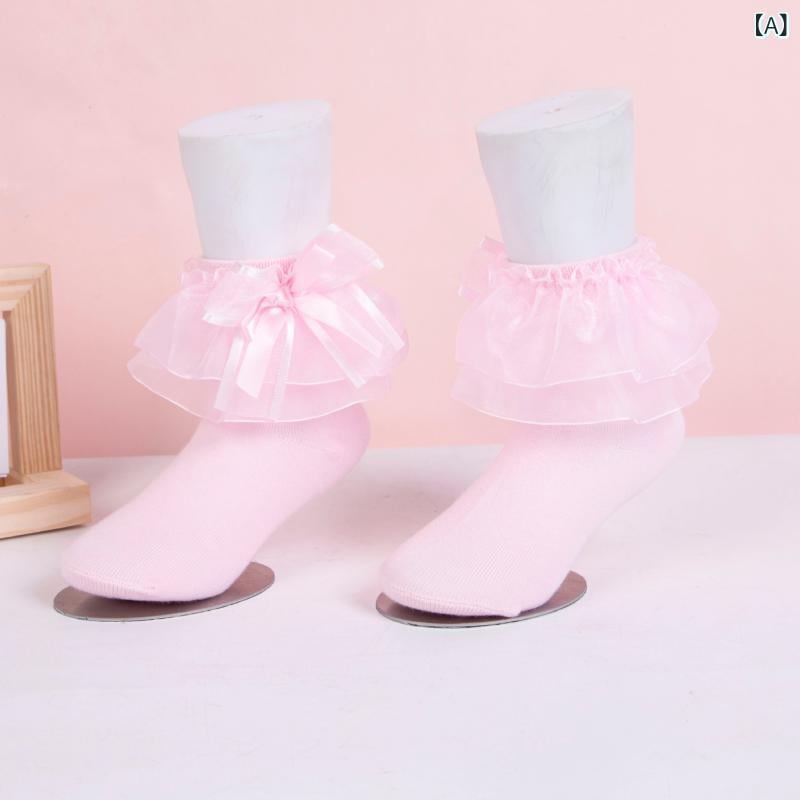 ソックス キッズ 女の子 プリンセス ロリータ風 レース フリル リボン ショート丈 綿素材 通気性 吸汗性 柔らかな履き心地 かわいい おしゃれ着用 ピンク ホワイト ブラック