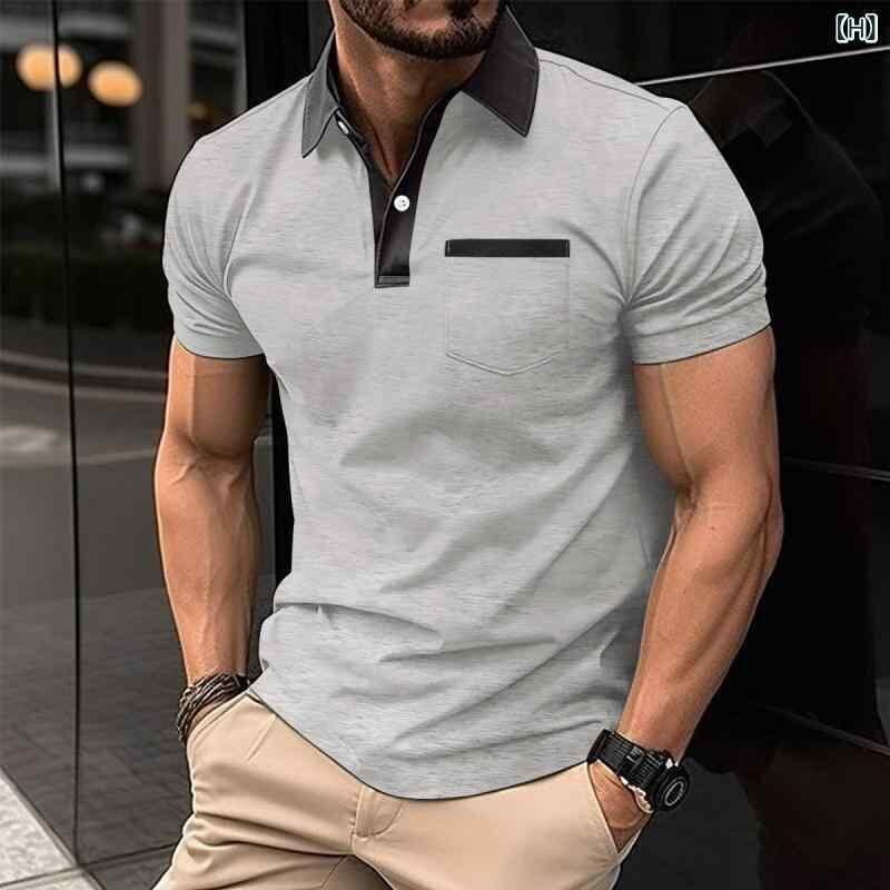 ポロシャツ メンズ 半袖 スリムフィット 襟付き 胸ポケット 夏物 カジュアル 無地 ポリエステル混紡 伸縮性 ウォッシャブル 豊富なカラー