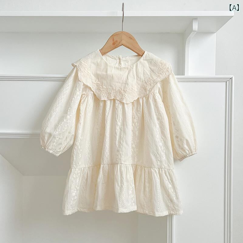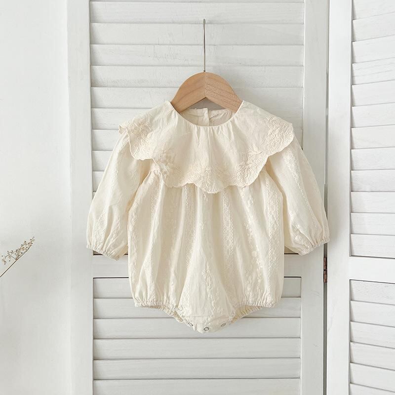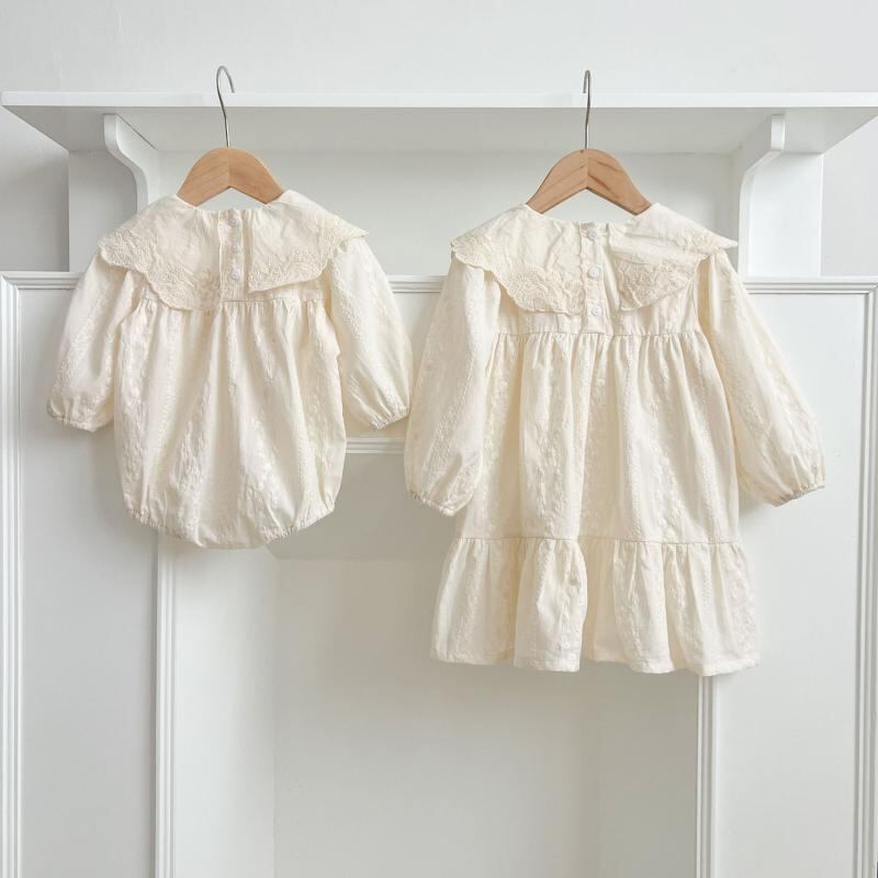ワンピース ロンパース 女の子 ベビー 韓国風 刺繍 ビッグカラー Aライン 綿100% 柔らかい肌触り 春秋 姉妹コーデ お揃い