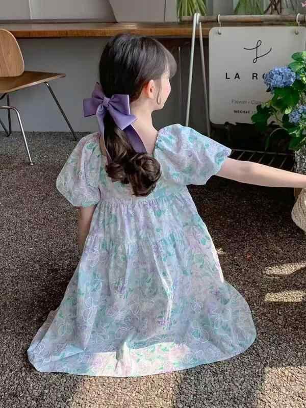 ワンピース キッズ 女の子 かわいい おしゃれ 小花柄 スクエアネック ミディ丈 ポリエステル ブルー系 パープル系 春夏 普段使い お出かけ