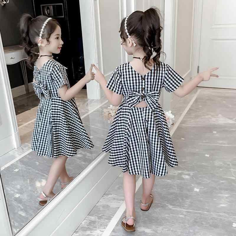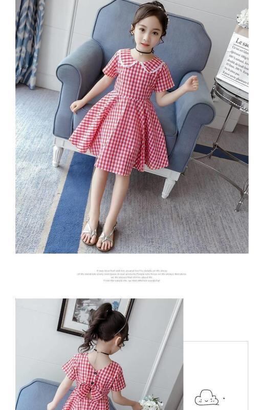 ワンピース 女の子 キッズ プリンセスドレス 夏 半袖 リボン チェック柄 ジュニア 女児 子供服 かわいい おしゃれ トレンド 普段使い お出かけ フォーマル カジュアル Aライン