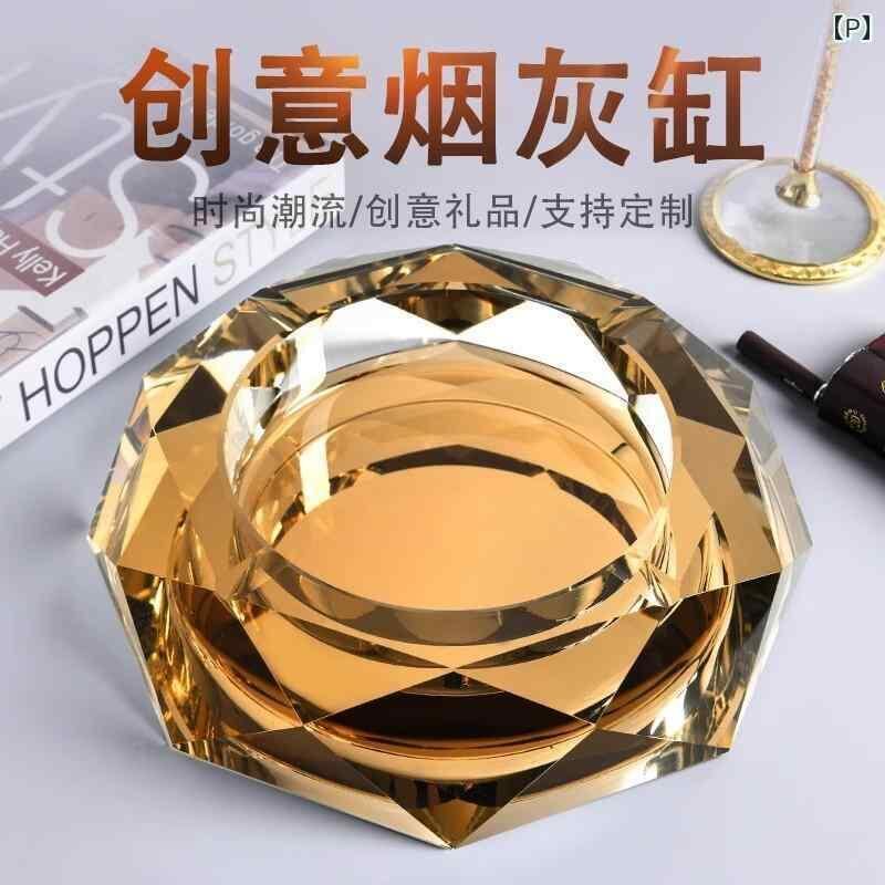 灰皿 クリスタル ガラス 八角形 家庭用 リビング オフィス ホテル 業務用 店舗用 卓上 おしゃれ モダン 電気メッキ加工 クリア ブラック ゴールド シルバー