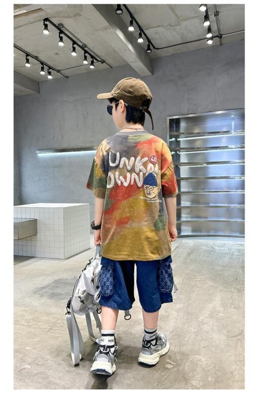 Tシャツ 男の子 半袖 夏 トップス ゆったり ルーズフィット キッズ 子供 ジュニア おしゃれ キャラクター プリント クルーネック 綿100% 吸湿速乾 普段使い カジュアル ホワイト カーキ