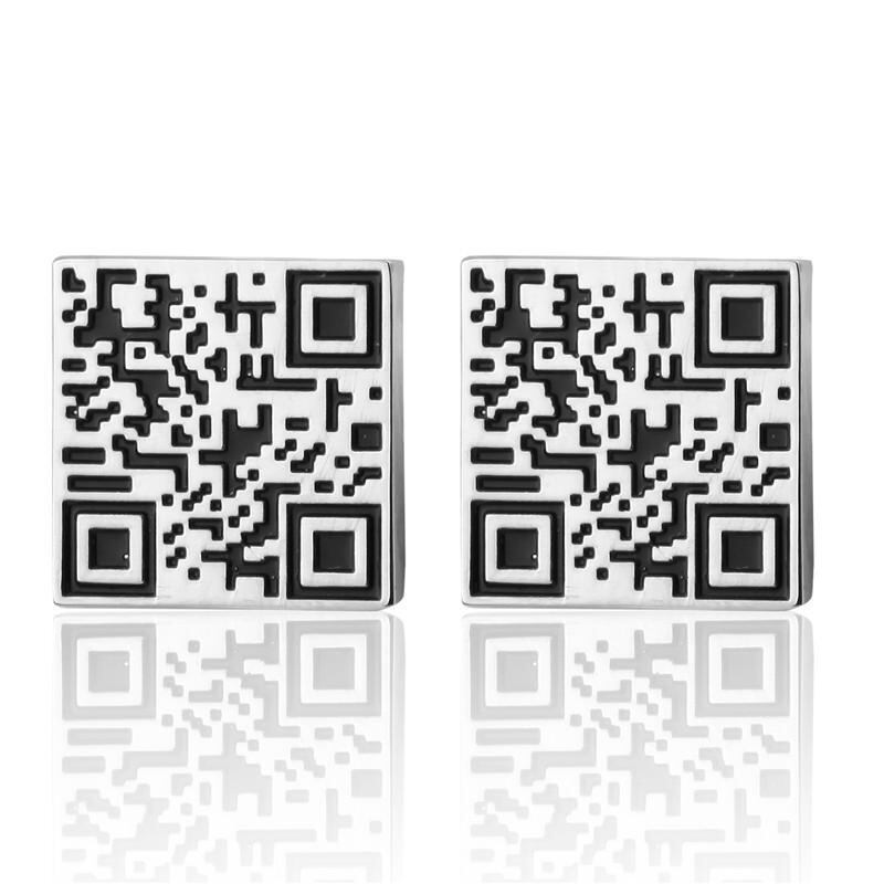 カフスボタン メンズ QRコード エナメル フレンチカフス ブラック ビジネス フォーマル 結婚式 パーティー 紳士用 欧米スタイル