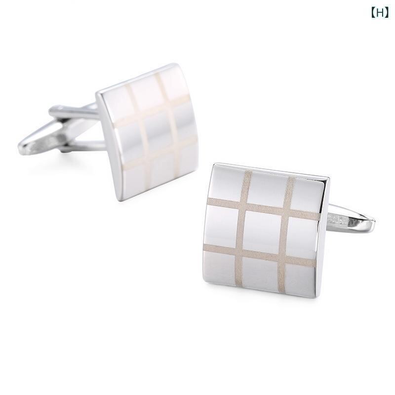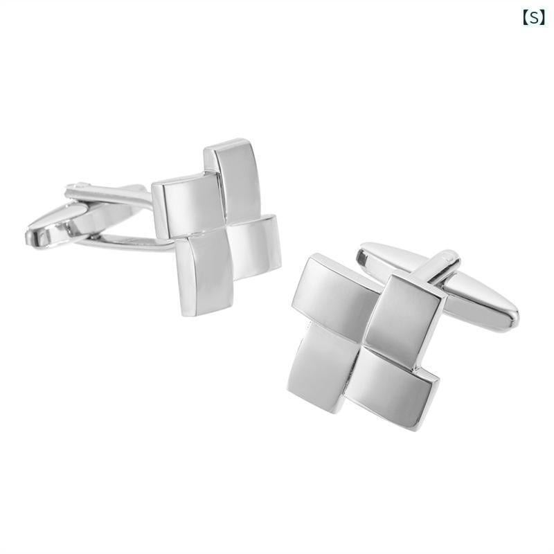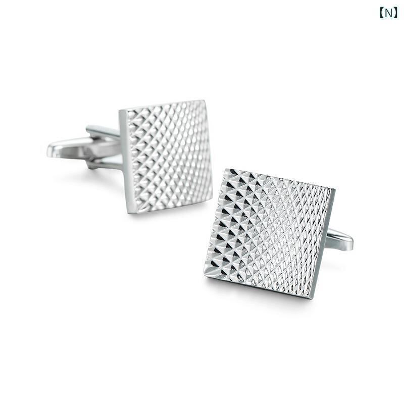 カフスボタン メンズ 高品質 高級感 メタル製 銅製 レーザー加工 スクエア グリッド柄 ヘアライン ビジネス フォーマル ドレスシャツ フレンチカフスシャツ ゴールド シルバー ブラック ローズゴールド 電気メッキ加工