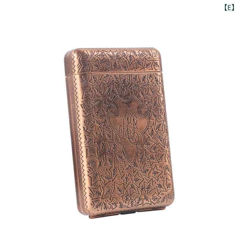 シガレットケース メンズ メタル製 改良版 六面彫刻 レトロ アンティーク調 三連開閉式 14本収納 タバコケース クラシックカラー ブロンズ ゴールド ブラック