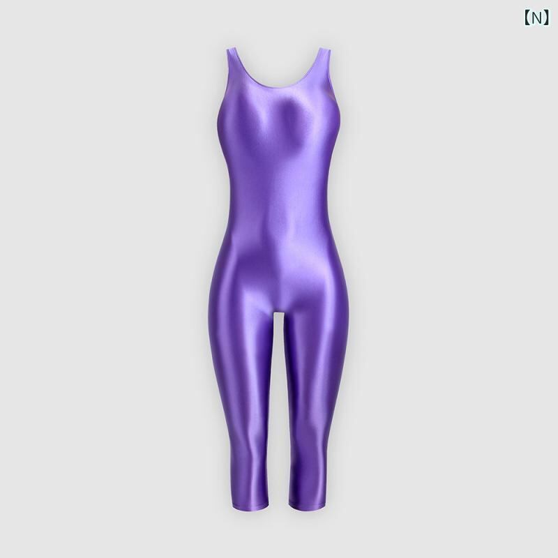 スポーツウェア レディース オールインワン タンクトップ ハーフパンツ フィットネス ヨガ ダンス トレーニング 体操 伸縮性 光沢感 タイト 吸汗速乾