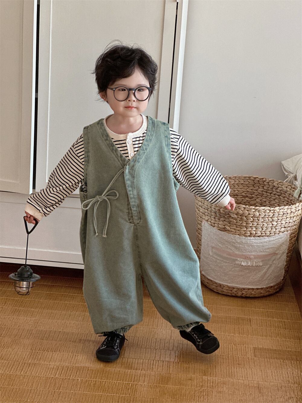 オーバーオール サロペット キッズ デニム ノースリーブ ユニセックス 男の子 女の子 子供服 コットン ワークウェア風 おしゃれ かわいい 韓国風 カジュアル 春秋