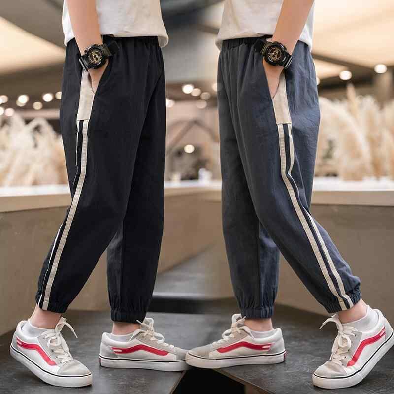 パンツ 男の子 キッズ ジュニア カジュアル ズボン ロング丈 綿混紡 防蚊 薄手 春夏 サイドライン ボトムス ブラック ネイビー スポーツ 普段使い