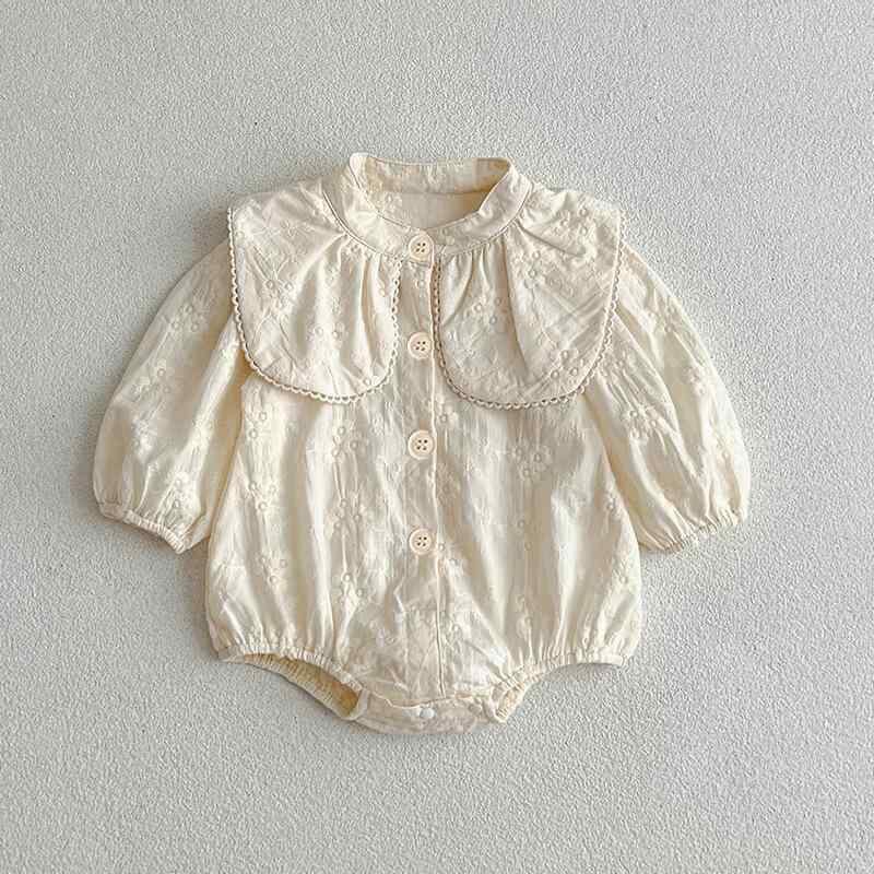 子供服 女児 ベビー ロンパース カバーオール ワンピース ドレス 韓国風 ビッグカラー 大きめ襟 長袖 刺繍 花柄 綿 コットン 柔らかい肌触り 春秋冬 姉妹コーデ お揃い