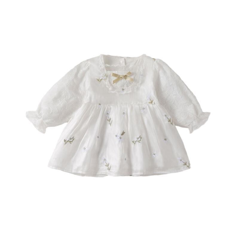 ワンピース 女の子 ベビー ドール プリンセス ミディ丈 ノースリーブ 夏 かわいい Aライン 綿混 ポリエステル ホワイト 新生児 乳幼児 お出かけ 発表会 フォーマル
