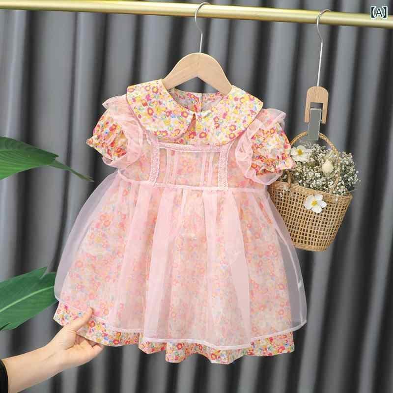ワンピース ベビー 女の子 子供服 かわいい ノースリーブ プリンセスドレス 春夏 綿 コットン Aライン ふわふわ 小花柄 メッシュ フォーマル お出かけ 1歳 誕生日 セレモニー 発表会 記念撮影