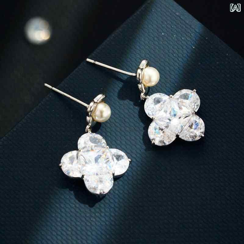 ピアス レディース 幸運 四つ葉のクローバー 花モチーフ フェイクパール ジルコニア S925シルバーポスト 高級感 ファッション オールシーズン 通勤 オフィス デイリーユース 電気メッキ加工