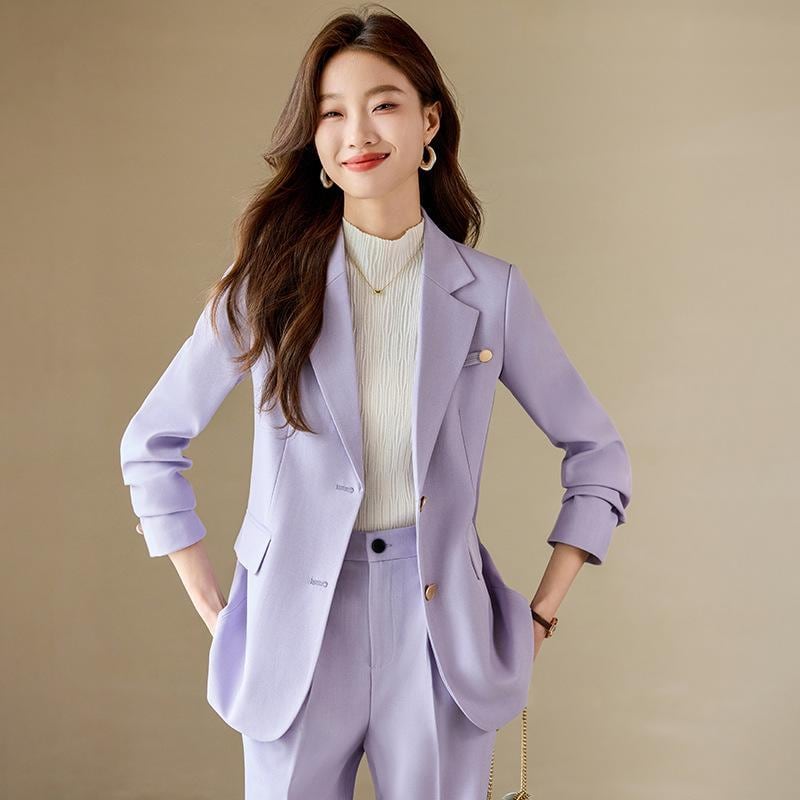 セットアップ レディース カジュアル スーツ ジャケット ブレザー 高級感 エレガント 上品 ゆったり オフィス ビジネス 通勤 着回し 秋冬 ポリエステル ロング丈パンツ 長袖