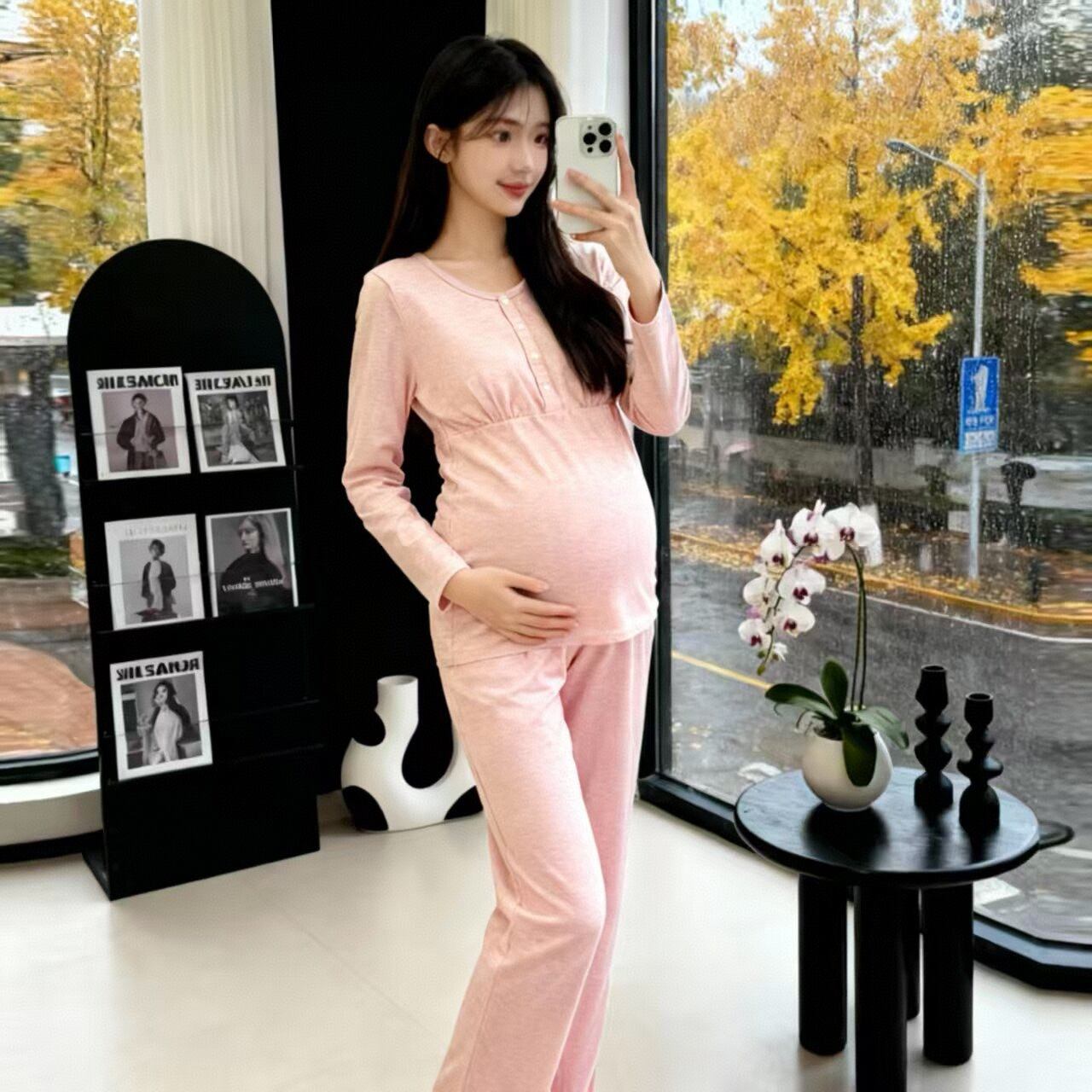 ルームウェア レディース 上下セット 厚手 前開き ブラ不要 マタニティ 授乳服 パジャマ ナイトウェア 産後服 コットン 長袖 丸首 大きいサイズ ゆったり 部屋着 快適 秋冬