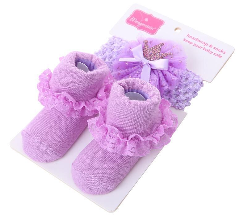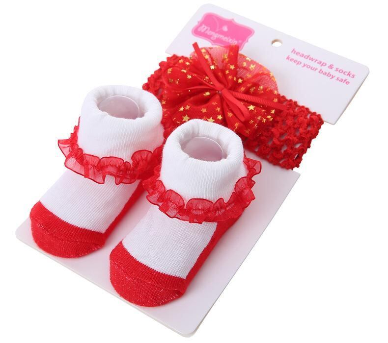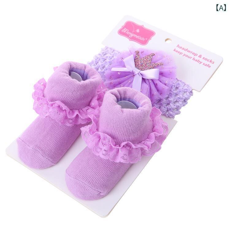 靴下 ベビー 新生児 女の子 綿 コットン 無地 プリンセス 欧米風 フリル リボン ヘアバンド セット 通気性 吸汗性 かわいい お出かけ 普段使い