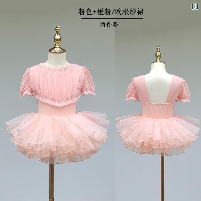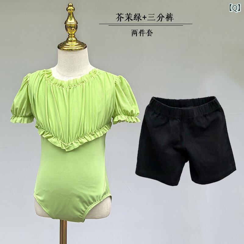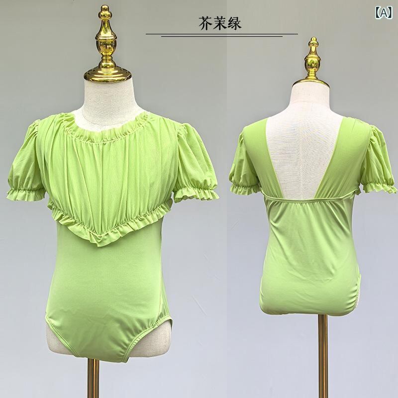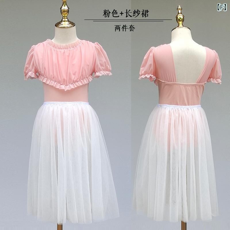 キッズダンスウェア 女の子 半袖 レオタード バレエ服 クラシックダンス 練習着 プリンセス かわいい レース メッシュ切り替え ナイロン 柔らか 夏用