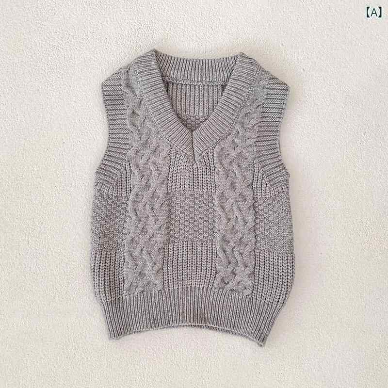 ニットベスト 新生児 ベビー 男の子 女の子 春秋冬 ノースリーブ 丸首 前開き 柔らかい 普段使い 着回し 無地 おしゃれ グレー カーキ