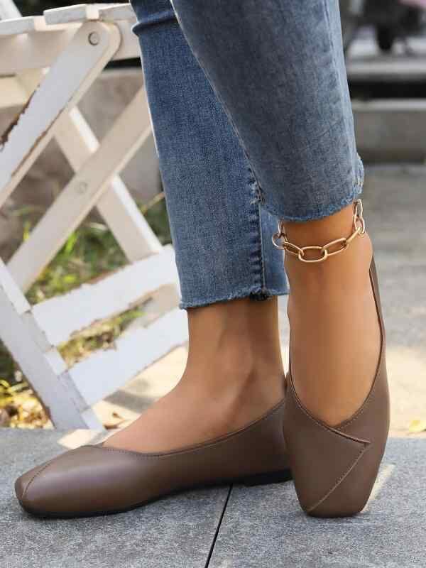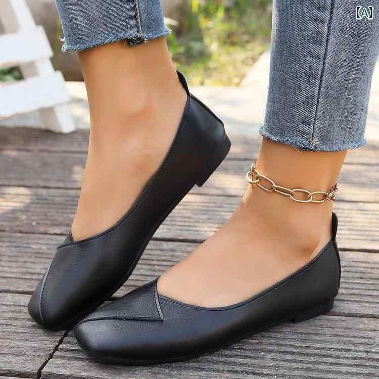 モカシン レディース スクエアトゥ 浅履き フラットシューズ 大きいサイズ 快適 らくちん スリッポン 仕事用 オフィス 通勤 普段使い フェイクレザー ブラック アイボリー ブラウン