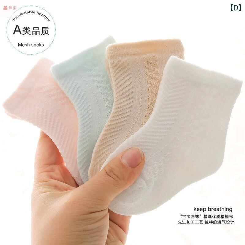 ベビー 靴下 新生児 赤ちゃん 男の子 女の子 男女兼用 春夏 薄手 通気性 メッシュ コットン 綿 かわいい 無地 キャラクター柄 ミドル丈 締め付けない 肌に優しい